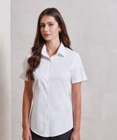 Women's stretch fit cotton poplin short sleeve blouse