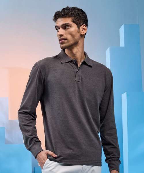 Long sleeved polo shirt styled for men. Knitted cuff and collar detail. Two button placket. Side vents. Machine washable. Product contains no branded neck label. Removable Kimble or looped garment tags. Inner seam label holds important product information on one label with a second label containing brand information which can be cut-away. Please note old stock may contain a fixed branded label.