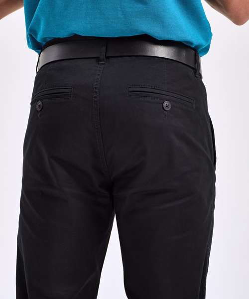 Classic fit. 98% cotton, 2% elastane. Side pockets. Small coin pocket. Welt back pockets with button closures. Belt loops. Zip fly with an extended buttoned closure.