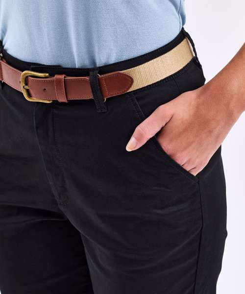 Discover the perfect blend of style and comfort with the Women’s ultimate chinos from Asquith & Fox! Boasting a slim fit and mid-rise design, they’re crafted from a cotton and elastane blend for comfort and flexibility. With convenient front and back pockets, along with a secure zip fly and button fastening, these chinos deliver a polished smart-casual look. Dress them up with a polo and blazer and add an Asquith & Fox belt for a finishing touch.