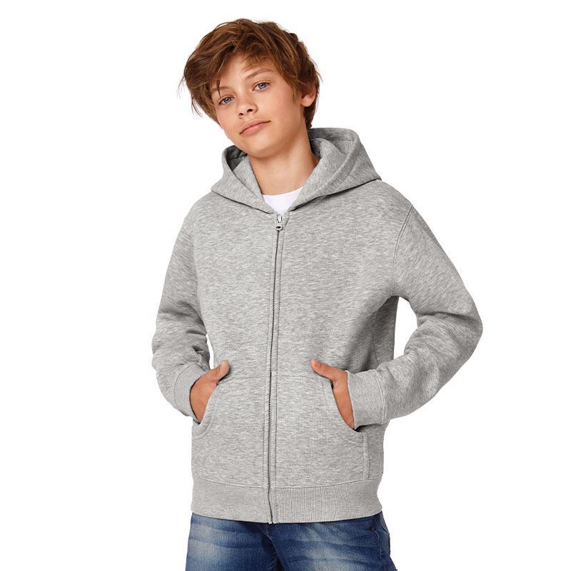 The B&C Hooded Full Zip /kids is a low-maintenance layer for extra coverage during spring & autumn-time adventures, this durable midweight full zip hoodie for kids is finished with comfortable ribbed cuffs and hem. It is as snazzy and soft as it looks and ready for winter walk as school commutes. The B&C Hooded Full Zip /kids sweatshirt has a 2 front pockets and a lined hood with no drawcords (EU regulation on Children's Clothing Safety compliant). Featuring B&C’s Perfect Sweat Technology, the B&C Hooded Full Zip /kids is not just a college classic, it shows enhanced printability thanks to its unique fabric construction that offers the best print results. On top, it has a luxurious, soft handfeel and a quality matt appearance, combined with durability and great comfort. With B&C PST unique fabric construction you can let your inspiration free, confident of great decoration results. With a wide range of colours and sizes to choose from, this sweatshirt is perfect indoor and outdoor activities, fun and off the field.