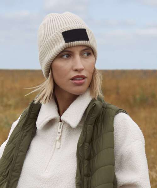 Contains at least 50% recycled polyester. Recycled polyester made from 100% rPET. Ribbed knit. Single-layer knit. Engineered crown for maximum comfort. Cotton twill patch for decoration. Cuffed design for optimal decoration. TearAway label for easy rebranding.