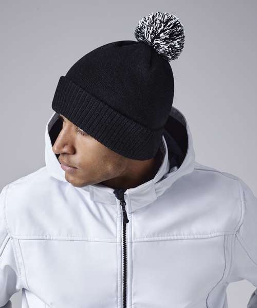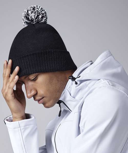 Contains 100% certified recycled polyester. Double-layer knit. Dual style – cuffed or slouch. Two-tone pom pom. TearAway label for ease of rebranding.