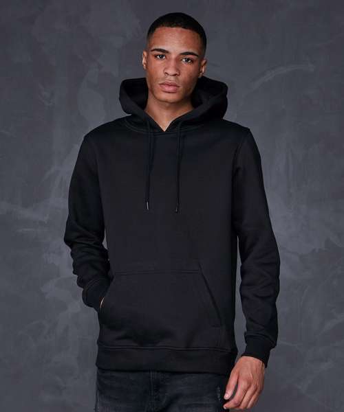 Classic basic hoody for men, perfect for refinement, for example by printing. Regular fit including hood and kangaroo pocket as well as the pleasant material provide a great wearing comfort. The hoodie is rounded off with wide ribbed cuffs and hem and a drawstring with plastic caps.