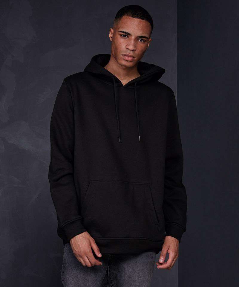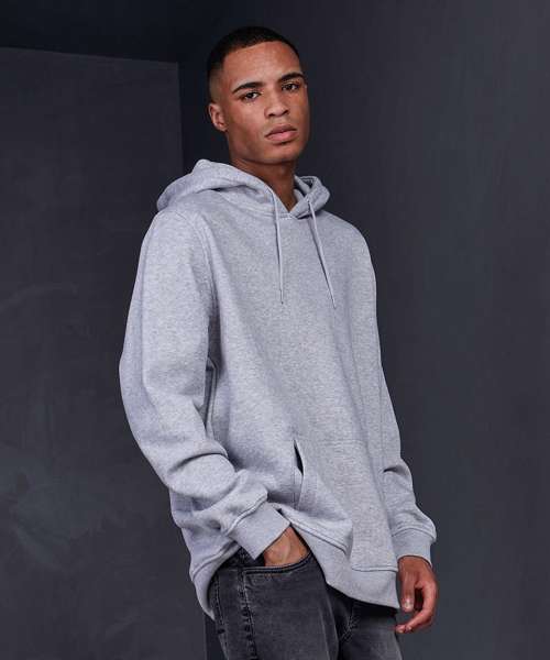 Comfortable hooded sweatshirt for men in hip oversized cut. Hood, kangaroo pocket and wide cuffs on sleeves and hem provide the necessary comfort. The hooded sweatshirt is perfectly suited to be refined and can be easily customised.