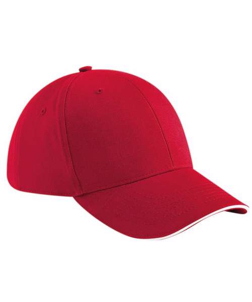 Tearaway label for ease of rebranding. 6 panel design. Mid profile. Pre-curved peak. Contrasting colour sandwich peak. Structured front panels. Perfect for print and embroidery. Self fabric strap with tri-glide buckle.