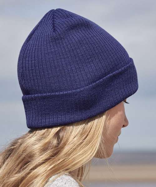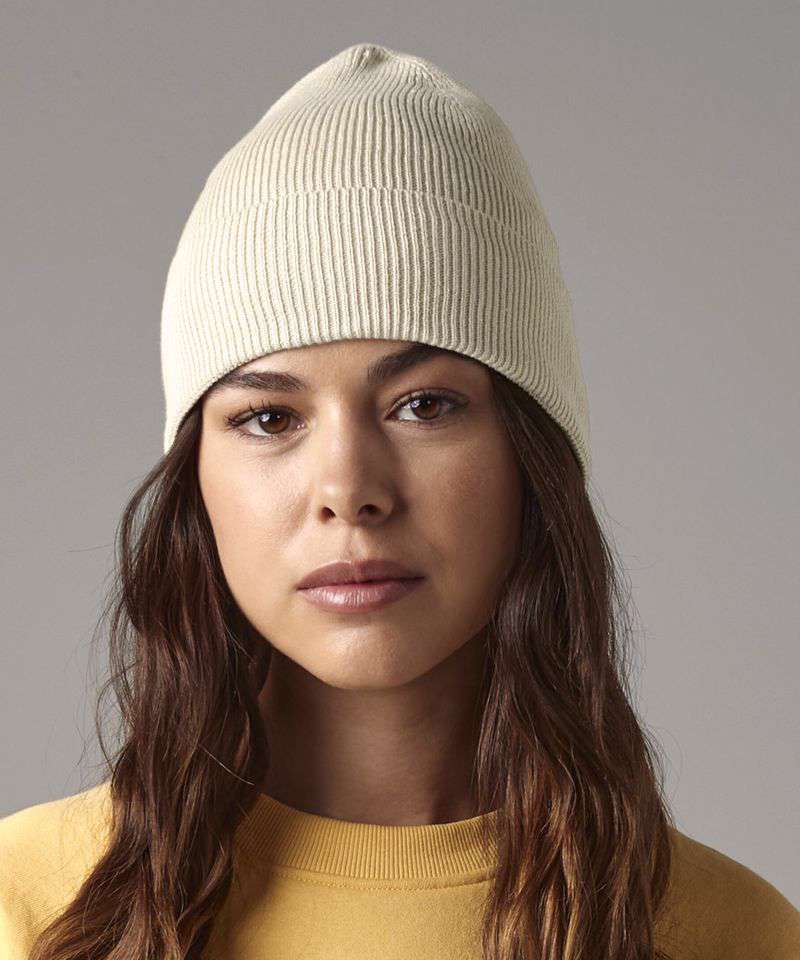 Contains 100% certified organically grown cotton. Lightweight breathable fabric. Single-layer knit. Engineered crown for maximum comfort. Cuffed design for optimal decoration. TearAway label for ease of rebranding.