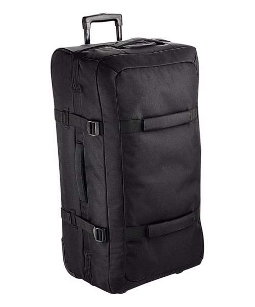 TearAway label for ease of rebranding. Convenient dual compartment design for easy packing. Lockable main compartment zip. External identification window. Removable Rip-Strip™ handle wraps for ease of decoration. Dual compression straps. High stability retractable twin-handle. Durable front grab handles. Padded top and side handles. Durable integrated skate wheels. Can be further customised with BG485 Escape handle wrap.