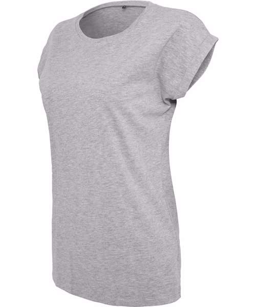 The women's extended shoulder tee from Build Your Brand offers a round-neck line, small rib cuff, extended shoulders and turn-up sleeves. This combination of features creates a sporty and trendy look. The light single Jersey and long cut ensure a comfortable fit. This product is ideal for rebranding, print and embroidery.