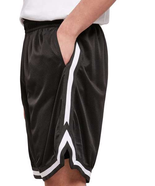 The Two-tone mesh shorts come in the typical casual jersey style and have cool details, such as the small slit on the sides and contrasting stripes on the hem. The fine mesh material is ideal for embellishing with printing. This item is manufactured in a FAMA Certified factory. FAMA stands for Facility and Merchandise Authorisation and is a high standard production certificate.