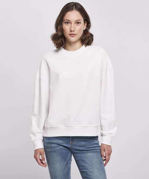 Designed as a comfy, oversize fit with dropped shoulders, this women’s long sleeve shirt is an instant classic. The used cotton and polyester fabric ensures a cosy wearing experience. Furthermore, the fabric is suitable for further refining with flock and screen printing or embroidery. The supple women’s sweater offers a ribbed crew neck and wide rib cuffs on sleeves and hem that complete its feminine style.