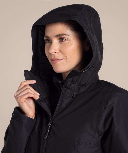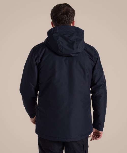 Cool wash with Craghoppers AquaDry waterproof cleaner or pure soap. Wash with similar colours. Do not use bleach or water softeners. Do not use fabric conditioners. Rinse well. Remove immediately after wash. Can be tumble dried on a low setting. Cool iron, if needed, on the outer side of the fabric. Do not dry clean. Do no wring. Close all fasteners before washing and drying. Use Craghoppers AquaDry reproofer if needed. Apply heat as per care instructions if DWR needs regenerating. Fabric may be damaged by solvents, alcohols and insecticides.