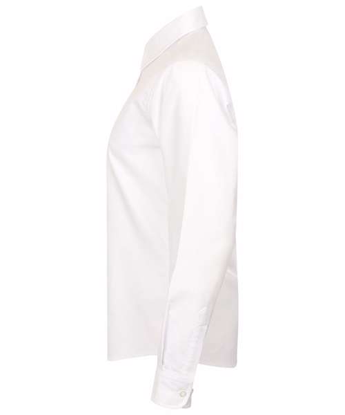 Cotton-Rich Classic Oxford with wrinkle resistant finish. Pearlised buttons on blue options, DTM on all others. Women's fit with shaped side seams and scooped hem. Adjustable cuff.