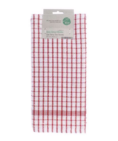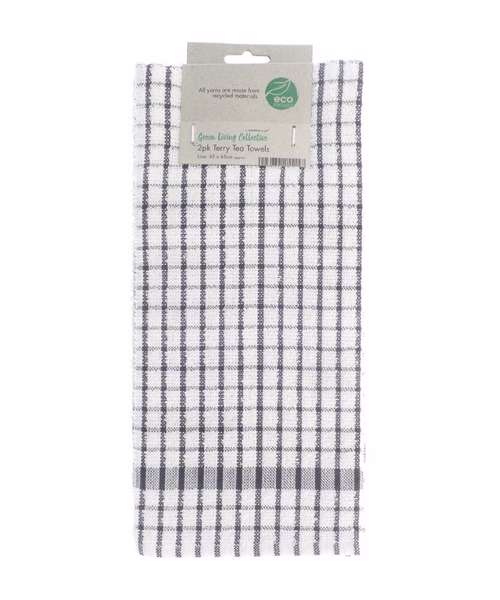 A double pack of terry tea towels – all yarns are made from recycled materials. Soft, absorbent and with a chequered design.