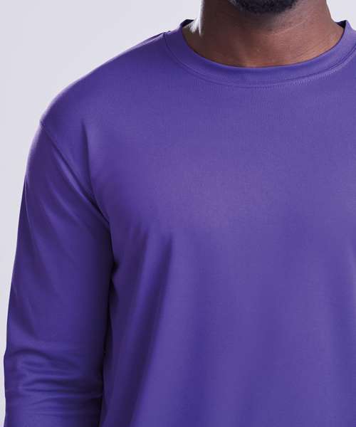 Long sleeve, self-fabric crew neck, set in sleeve design. AWDis' own Neoteric™ textured fabric with inherent wickability and quick drying properties. Self-fabric taped back neck. Simple tear off label makes it perfect for rebranding. UPF 30+ UV protection.