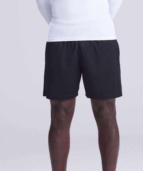 Elasticated waist. Mini mesh lined inner with drawcord. AWDis' own Neoteric™ textured fabric with inherent wickability and quick drying properties. Side pockets. Internal key pocket. UPF 30+ UV protection.