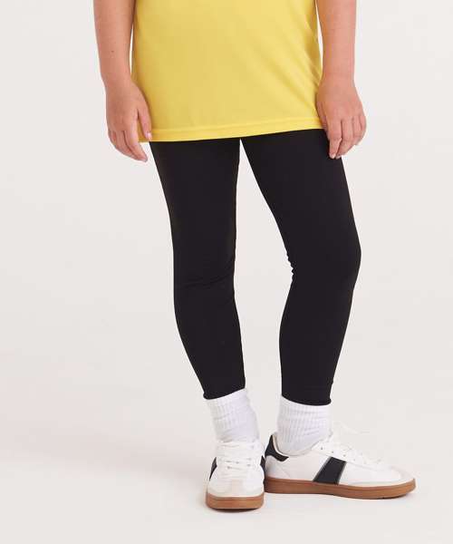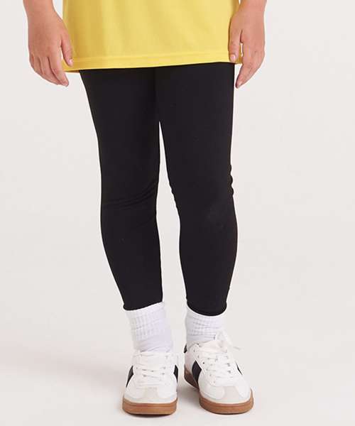 Full-length kid legging. Deep waistband and stretch fabric for comfort and ease of movment. Quick-drying and wicking.