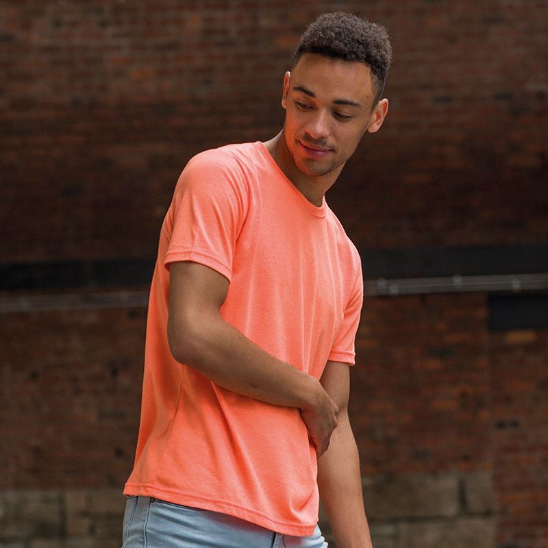 A striking addition to the Just T's tri-blend collection, this in-demand T mixes classic with quirky. In electrifying colourways, this modern fit T is derived from triblend fabric for added style and extra comfort. The colours of the unisex T make for an excellent print and embroidery surface. You’ll be sure to steal the style top spot in this statement T.