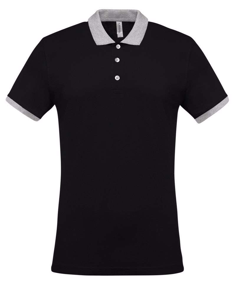100% preshrunk cotton piqué (Oxford Grey: 90% cotton/10% viscose). Contrasting rib at neck and cuffs. Contrasting taped neck. Contrasting inner placket with 3 buttons. Twin needle finishing at hem.