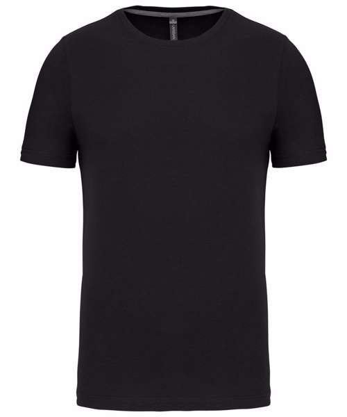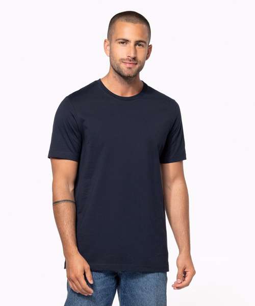 100% Cotton enzyme washed for extra soft hand feel (Oxford grey : 90% Cotton / 10% Viscose). Slim fit. Self fabric neckline. Heather Grey contrast taped neck for all colours, except for white body where tape neck is White and Oxford Grey body where tape neck is Dark Grey. Twin needle finishing. BSCI certified. Oeko-Tex certified.