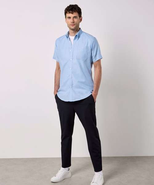 This modern slim fitting short sleeve oxford shirt is as durable as it stylish. Cotton rich and cut from a soft oxford weave, it's a comfortable and fashionable choice.
