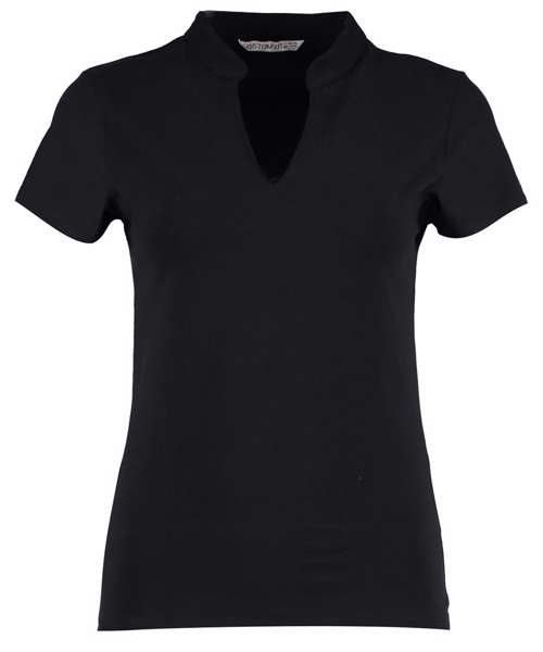 KK770: Women's corporate short-sleeved top v-neck mandarin collar (regular fit)