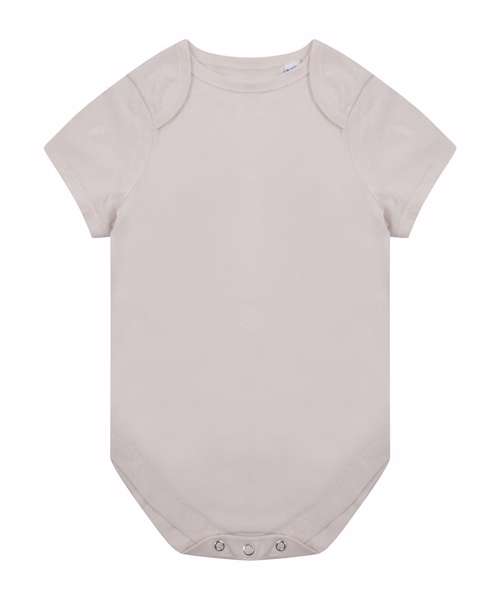 Making a change, this super-soft organic cotton bodysuit has YKK popper fastening on the gusset with self-coloured binding around the envelope neckline.