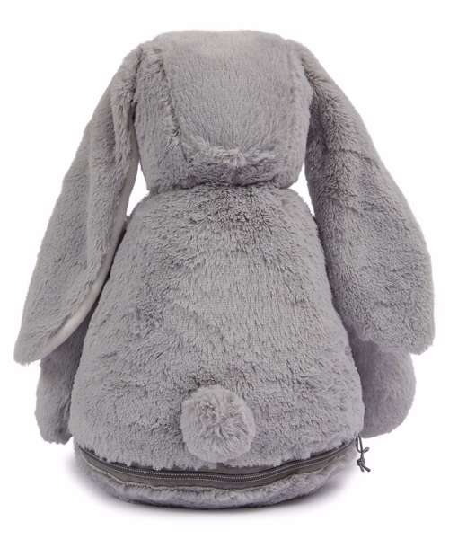 Hop along with the Zippier bunny with soft plush fur and lovable floppy ears. The bunny's tummy is easily embroidered and printed with zip access at base.