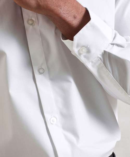 Supreme heavier weight Easycare poplin shirt with improved wear and appearance. Stiffened formal cut collar. Button fastened cuffs that will also fit cufflinks. Two button fastening detail on collar stand. Semi fitted styling. Easy cut-out label for rebranding.