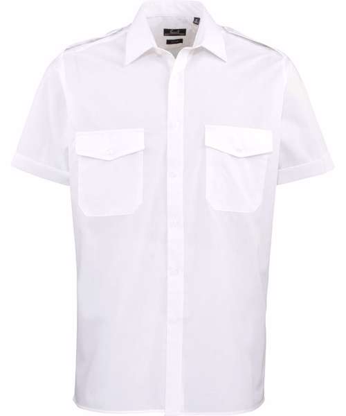 A men's short sleeved pilot/security shirt with a stiffened collar and tabs for epaulettes on shoulders for those who need a more authoritative approach to their workwear.
