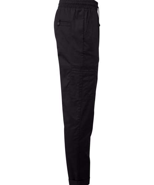 For a modern look in the kitchen, pull on these lightweight cargo trousers. Made with certified recycled polyester, the classic cargo design means these trousers boast multiple pockets with an elasticated drawcord waistband for complete comfort throughout your shift. They have a tapered fit to the lower leg with optional turn-up hem for a relaxed, on-trend look.
