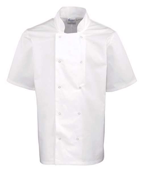 PR664: Studded front short sleeve chef's jacket