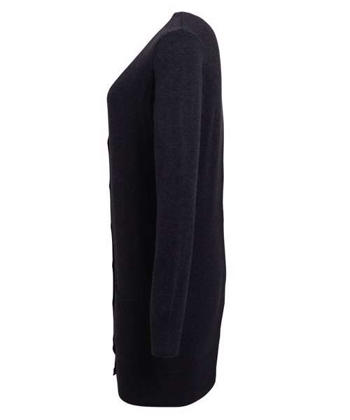 Ladies can layer up in style with this fashionable long-length knitted cardigan. Reflecting the latest high street trends for cosy knits, this cotton rich ladies cardigan can be worn loosely over a blouse or fastened up with buttons. The ribbed knit plunging v-neck, cuffs and hem make for a comfortable fit offering excellent shape retention.