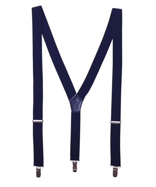 Y back trouser braces with stretchy elastic fabric for comfort and style. 3cm strap width. Two metal non slip clips to the front for attachment to trousers. One clip to the back. Metal lock buckles for adjustment making a one-size-fits-all piece.