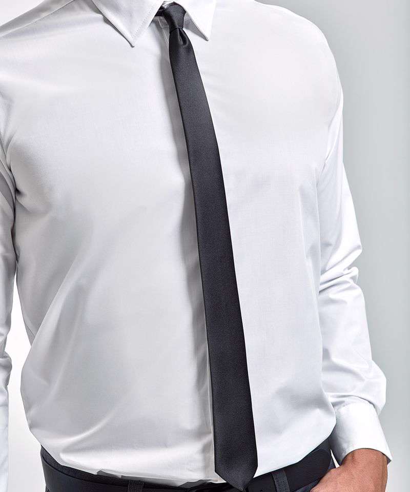 A wardrobe essential for the modern businessman, this popular slim-line tie has a blade width of just 5cm. Available in five colours with a satin look and feel for a fashionable look in the office.