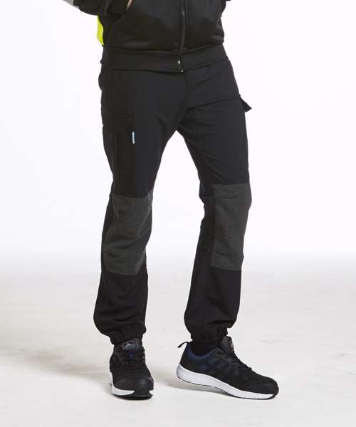 Slim fitting work trouser that provides incredible comfort and flexibility. Reinforced knee panels with subtle articulation allow for increased freedom of movement whilst the ribbed waistband and elasticated hems ensure a universal fit. Additional features include pre-bent knees a crotch gusset and multiple pockets ideal for the secure storage of phones pens and tools.