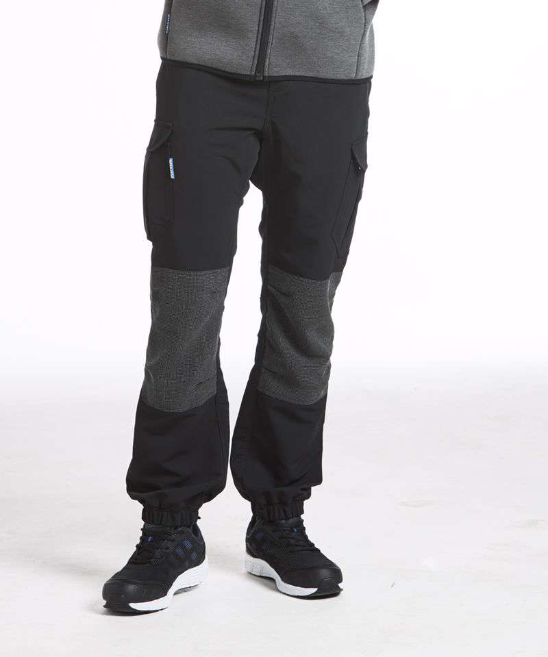 Cargo pockets on side leg. Double-layer knee protection. D-ring. 5-pockets. Bar tacked at all stress points. 4-way stretch fabric. Registered Community Design. Contemporary design with clean cut lines. Crotch gusset. Pre-bent knees. Fully ribbed waistband with drawstring . Slim fit cuffed pants. Easy grip pullers.