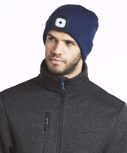 This warm and comfortable acrylic beanie hat features a removable LED front light for superior visibility in low light conditions. The rechargeable LED can be charged in a USB port.