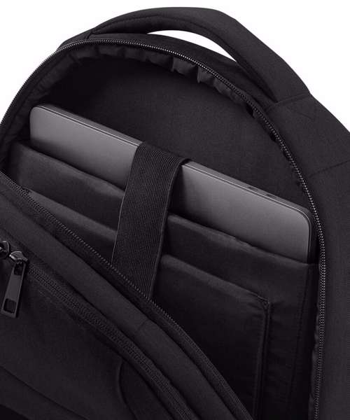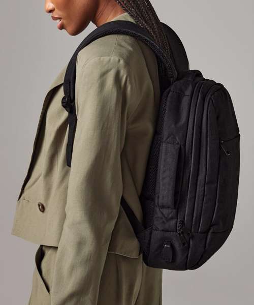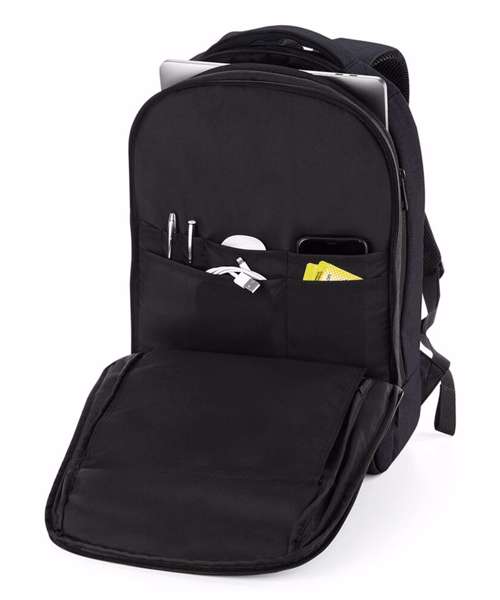 TearAway label for ease of rebranding. Padded laptop compartment, compatible up to 15.6". Padded internal iPad / Tablet compartment. Discrete zippered back panel pocket. Front pocket organiser section Power bank pocket. Integrated USB charging port. Zippered internal valuables pocket. Can be carried by hand or backpack style. Zippered front pocket. Ergonomic padded back panel. Padded adjustable shoulder straps.