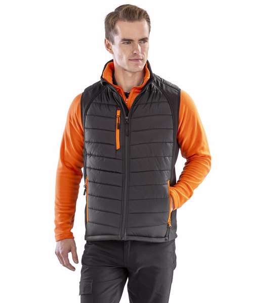 On-trend padded plus softshell combination. Supersoft, lightweight and warm. Ready to brand. Quiet to wear. Contrast colour pocket zips. Full front zip with chin guard. Stand-up padded collar. Padded body. Soft bound armhole. Black zip pulls. Hangtag.