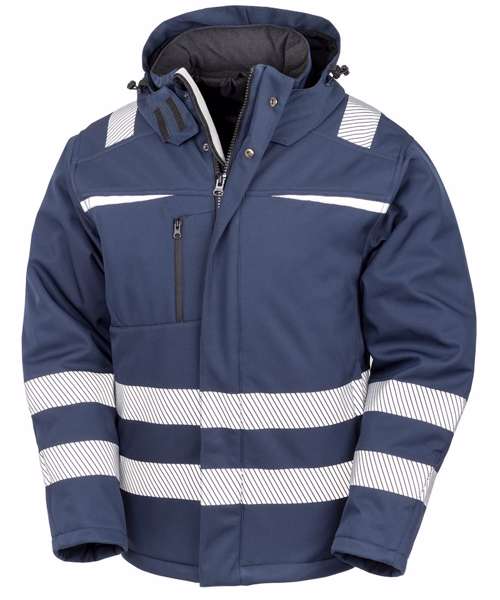 The new generation in safety wear! This 3-layer performance dynamic softshell brings style, fit and comfort. The durable water-repellent fabrics, breathability, inner storm cuffs and hood all add to the windproof protection whilst the modern printed chevron design brings the EN ISO 20471 Class 2 visibility that allow this beautiful jacket to stand out from the crowd!