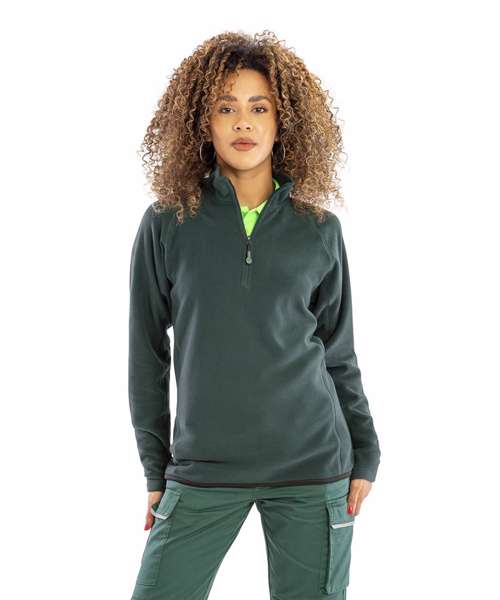 Recycled fleece top with 1/4 front YKK NATULON® Eco-friendly zip. Soft bound elasticised cuffs and hem. Decorative body stitching. Made from highest quality perPETual© yarns. Compact dense knit for good heat retention, quick-dry and moisture-wicking. Easy wash, quick-dry. Hang Loop. PFC-free.