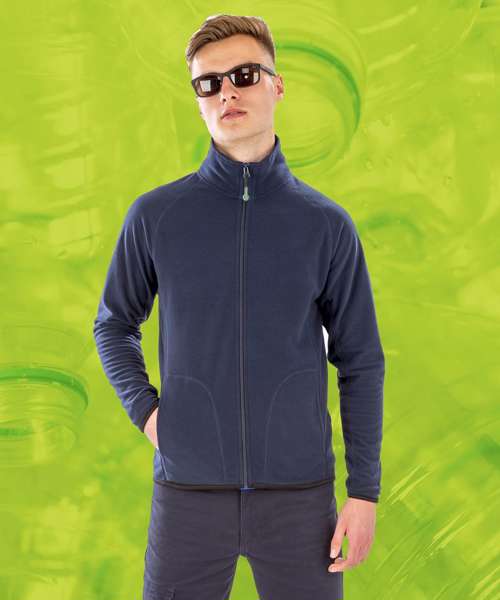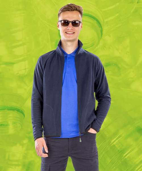 Lightweight, warm and affordable – a fitted, soft-feel, recycled microfleece, zipped jacket. An ideal all-season, layer garment.