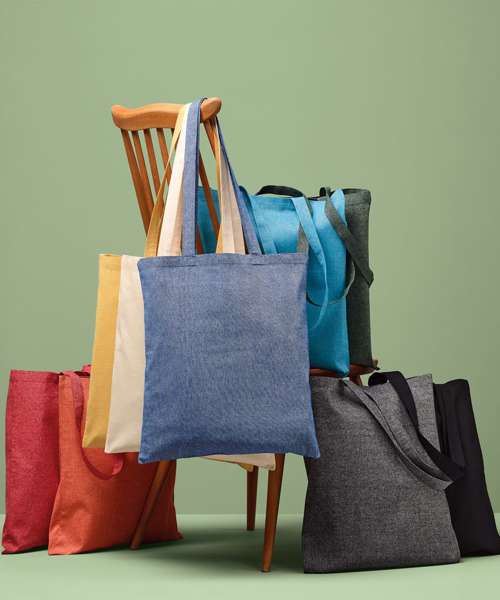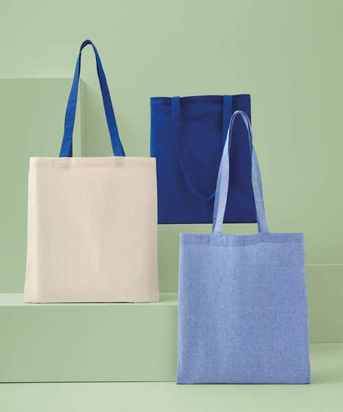 Made from recycled cotton, this tote can be carried over the shoulder or by hand. Created with 150gsm recycled cotton. Handles measure 35cm x 3cm. Marl effect colours are a blend of natural and coloured cotton.