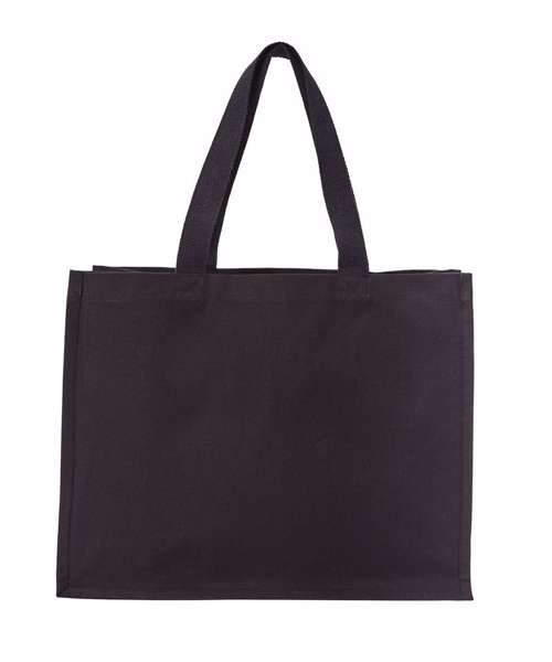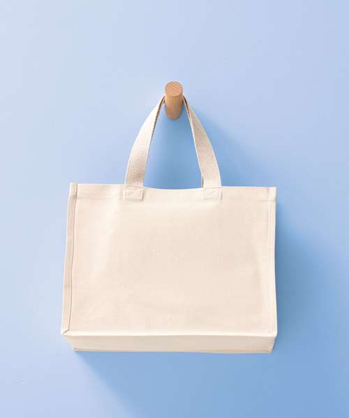 Stand-up shopper made from recycled cotton canvas. 220gsm, with a polyurethane coating that enables it to stand up. Soft webbing handles.