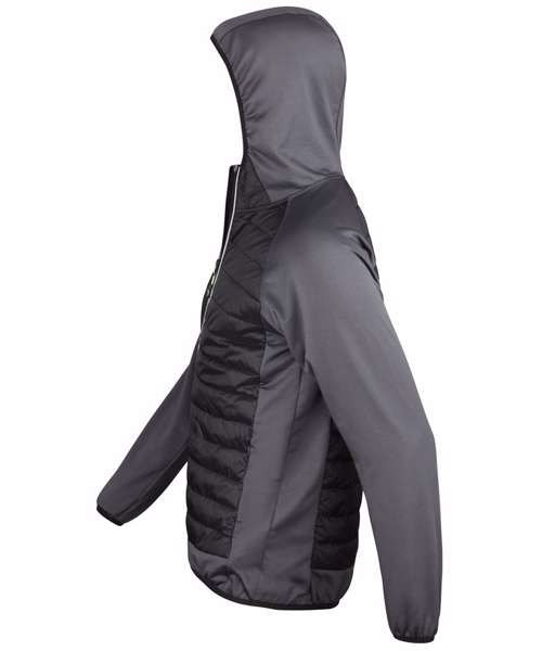 Showerproof, Breathable. Padded body feature; Anatomically curved on women’s. Super stretch fabric hood and hems. Invisible zip side pockets. Bound cuff, hem and hood. Reflective detail. Thumbhole cuff. Integral hood. Quick dry. Virtually weightless, ideal layer garment. Thumbholes help top stay in place. Articulated sleeves allows full motion. Attractive padded body using faux down. Ventilated performance, lightweight insulation. Super-Stretch fabric and ergonomic seams allow natural movement.