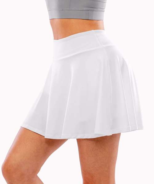 Classic, high-waist, flared, women’s skirt with integral short for tennis and all court sports. With two pockets, this high-stretch recycled fabric offers flattering drape and flare.