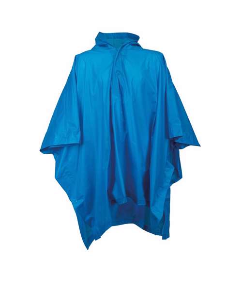 Kids Splashmacs poncho. Hood and popper neck fastenings with a double press-stud fastening on each side, allowing the wearer to open up the cape and lay it flat so it doubles as a useful groundsheet. Carry case, with drawstring handle. Printing Instructions: Can be decorated using screen printing inks, but always without direct heat.