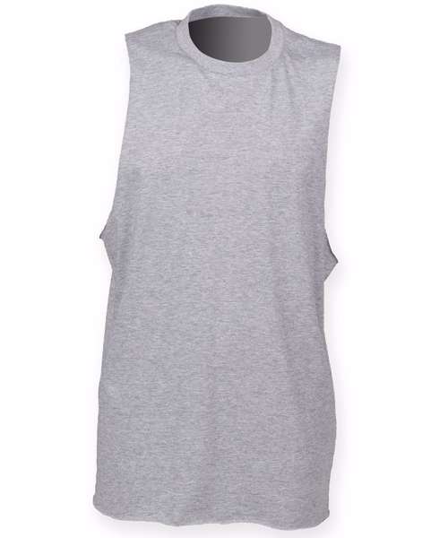 Tear-out SF (Skinnifit) label. Ribbed crew-neck. Raw edge slash armhole and hem. Matches Ladies' SK232 High Neck Slash Armhole Vest.