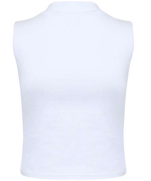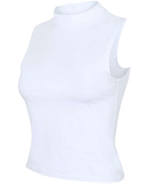 High fashion. High impact. A fashion throwback, this high neck crop vest style is in high demand again. Soft-stretch single Jersey fabric with self-fabric funnel-neck and twin-needle stitching at armholes and hem ensure a premium finish. Features tear-out label for easy rebranding.